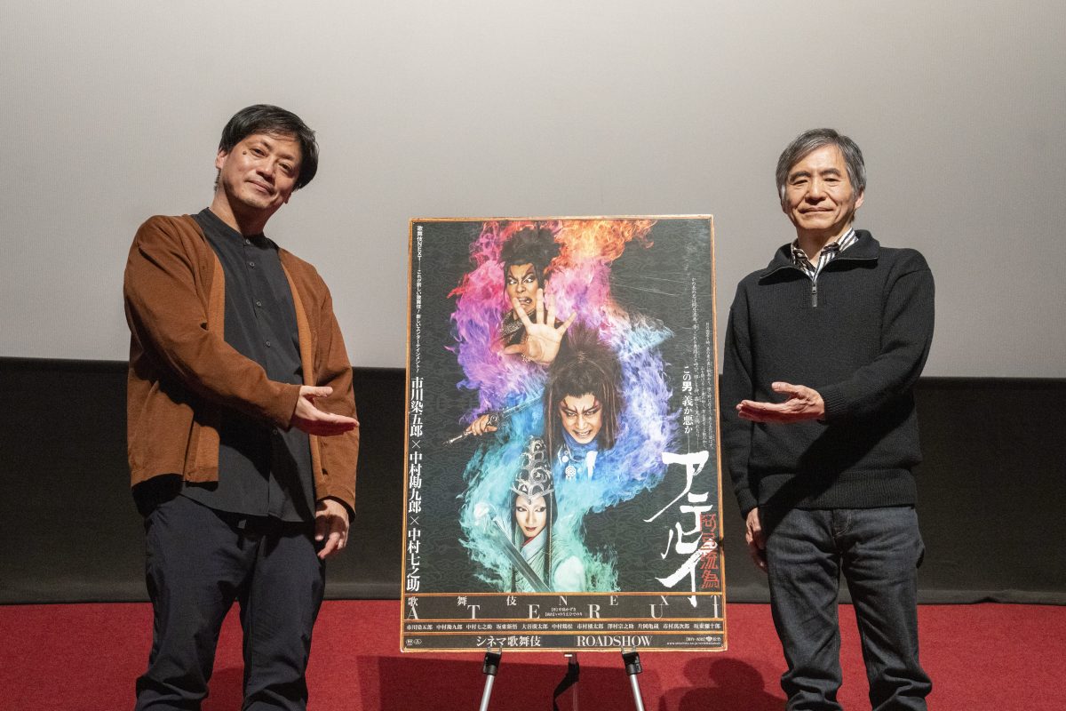 2025年12月18日(木)東劇にて、《月イチ歌舞伎》12月上映の『歌舞伎NEXT 阿弖流為〈アテルイ〉』のティーチイン付上映会が開催されました。本作の脚本を手掛けた中島かずき氏(劇団☆新感線)が登壇し、ライターの九龍ジョー氏を聞き手に迎え、自身の執筆スタイルや『歌舞伎NEXT 阿弖流為〈アテルイ〉』制作秘話、同じく中島かずき氏が脚本を手がけ来年1月に公開が迫る新作シネマ歌舞伎『歌舞伎NEXT 朧の森に棲む鬼』についての話題もあがり、さらには、SNSや会場からの質疑応答もあり、ファン必見のお話が次々と飛び出しました。