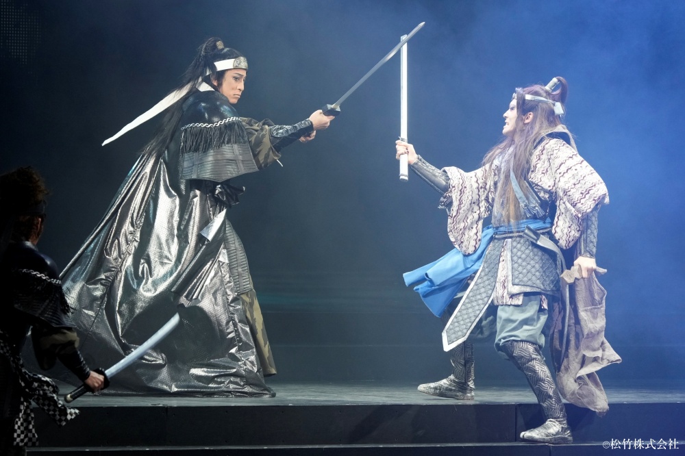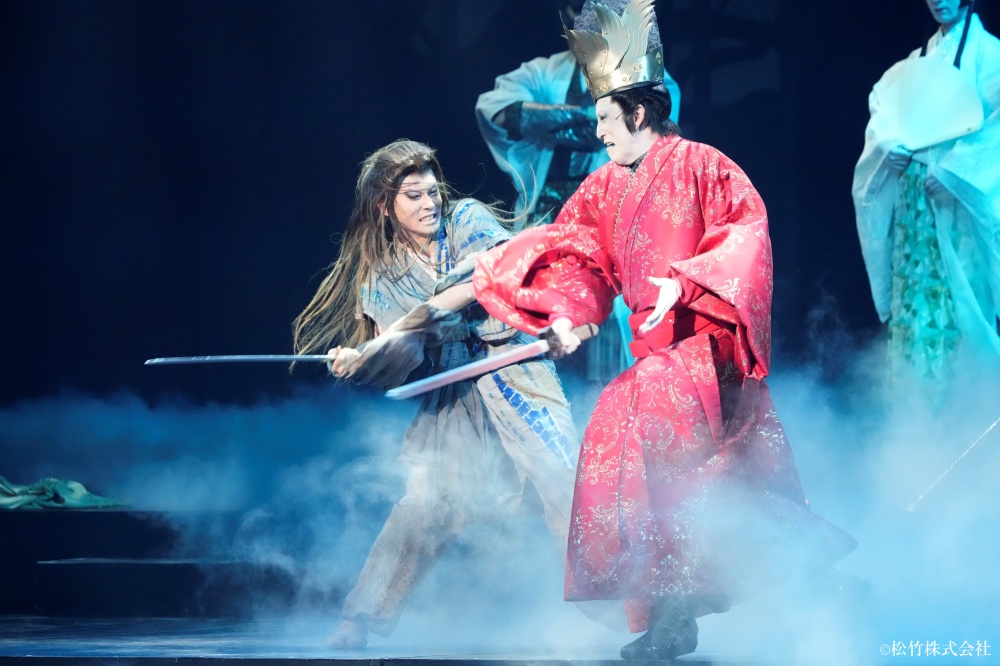 作品の大ファンでもある染五郎はライの一番印象的なシーンを問われると、中盤の牢獄のシーンを挙げました。「一気に悪が深まる場面。一緒に舞台立っていた時も、本当に怖かったです」と、共演者目線で幸四郎演じるライの凄まじい迫力を伝えました。幸四郎がシュテンを演じた染五郎についてコメントを求められ、「殺陣(立廻り)に希望が持てた」と遠回しに褒めると、吉崎がすかさず「格好良かったですよね!」と応じます。幸四郎が「これからもたくさん人を斬るところを観たいです」と冗談交じりに語り掛けると、染五郎も「できるだけ多く斬りたいと思います」と応えて笑いを誘いました。