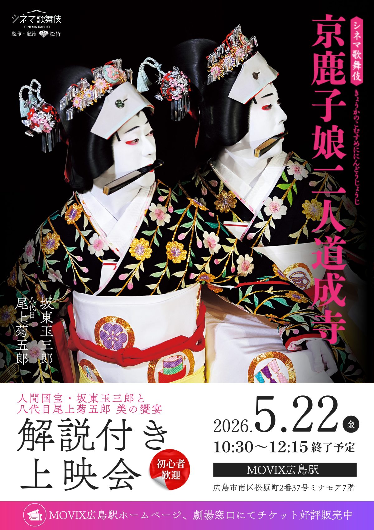 【広島】《月イチ歌舞伎》5/22(金)『京鹿子娘二人道成寺』解説付き上映会 開催!