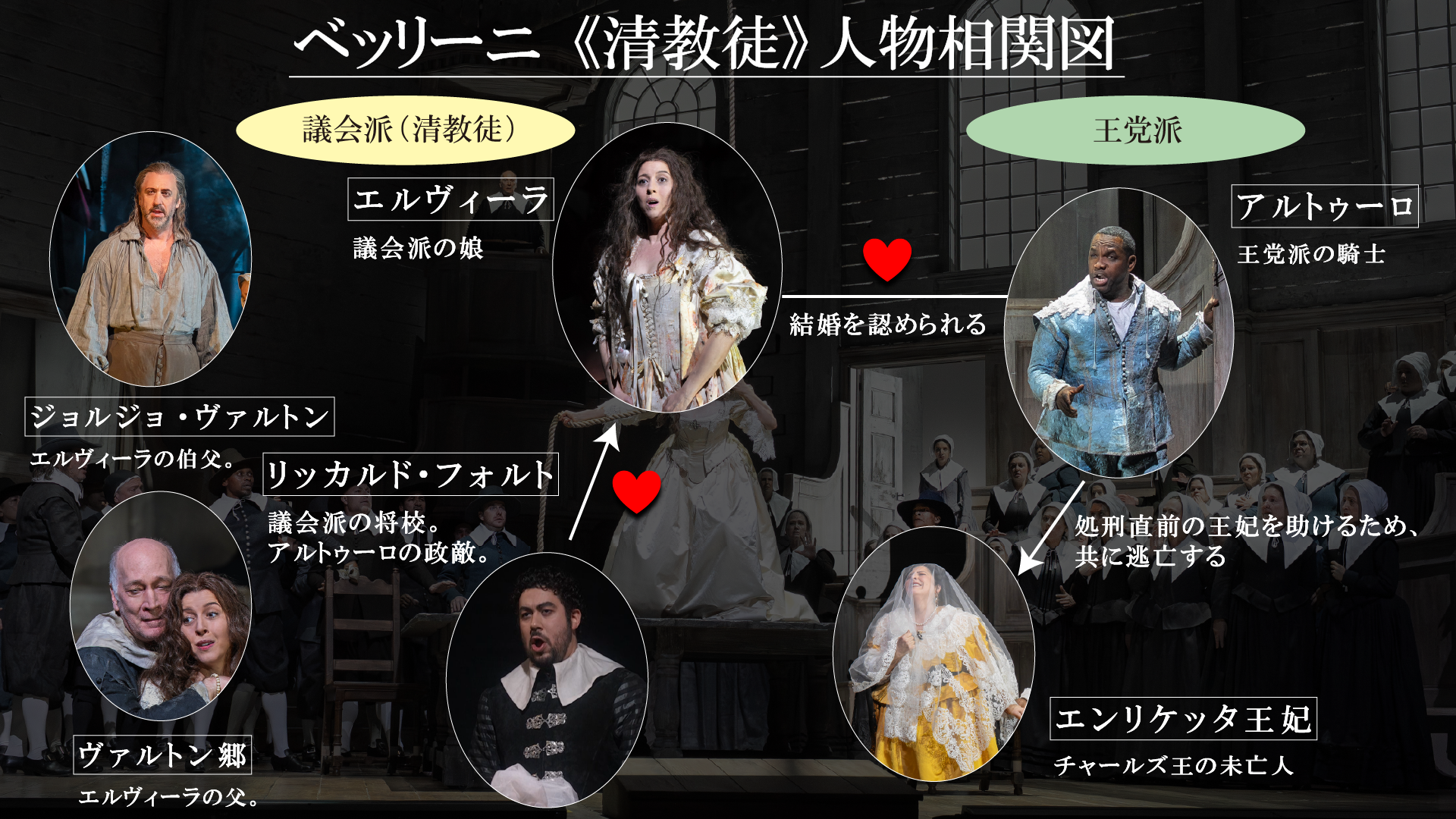 この度は、ベッリーニ《清教徒》の人物相関図をご紹介いたします!