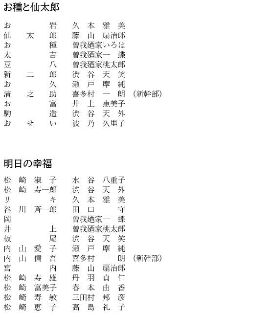 水谷八重子休演のお詫びと配役変更のお知らせ>>